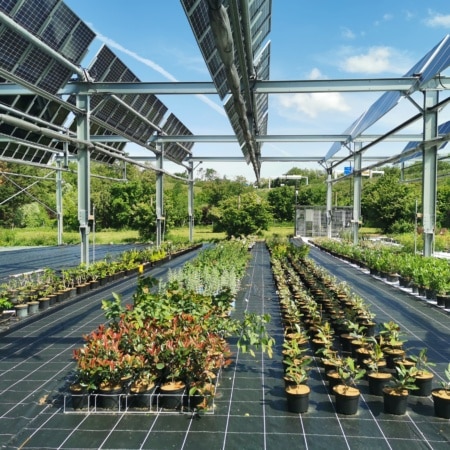 Le programme Parcelles du Futur explore le potentiel de l’agrivoltaïsme comme solution permettant de concilier production agricole et énergie solaire. À Dardilly, dans le Rhône, CNR teste deux dispositifs : une ombrière photovoltaïque mobile au-dessus de cultures de fraises et framboises, et une autre couvrant une pépinière horticole.