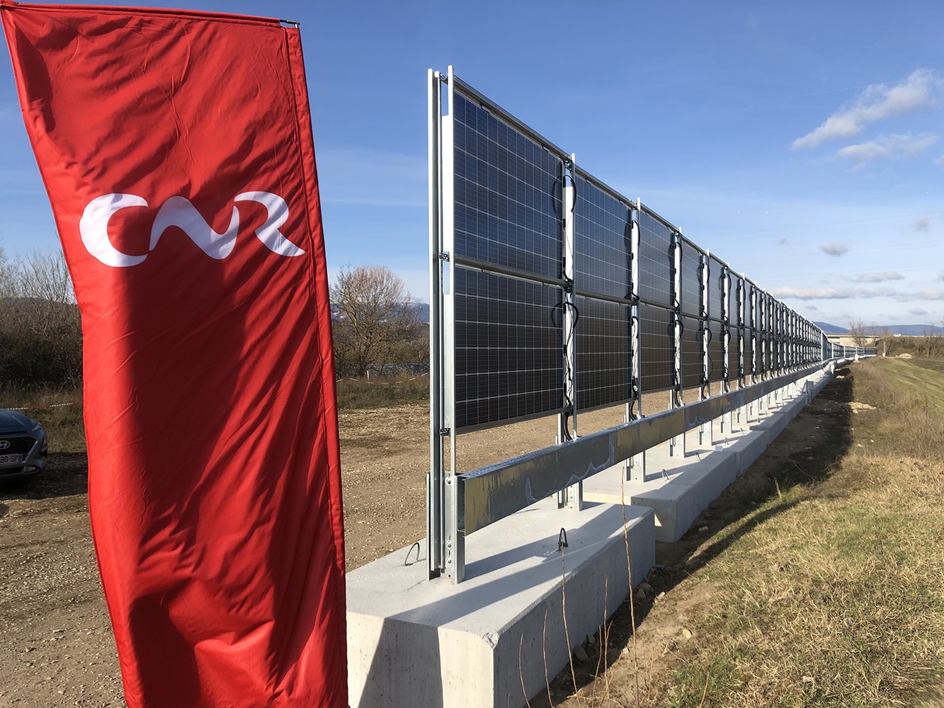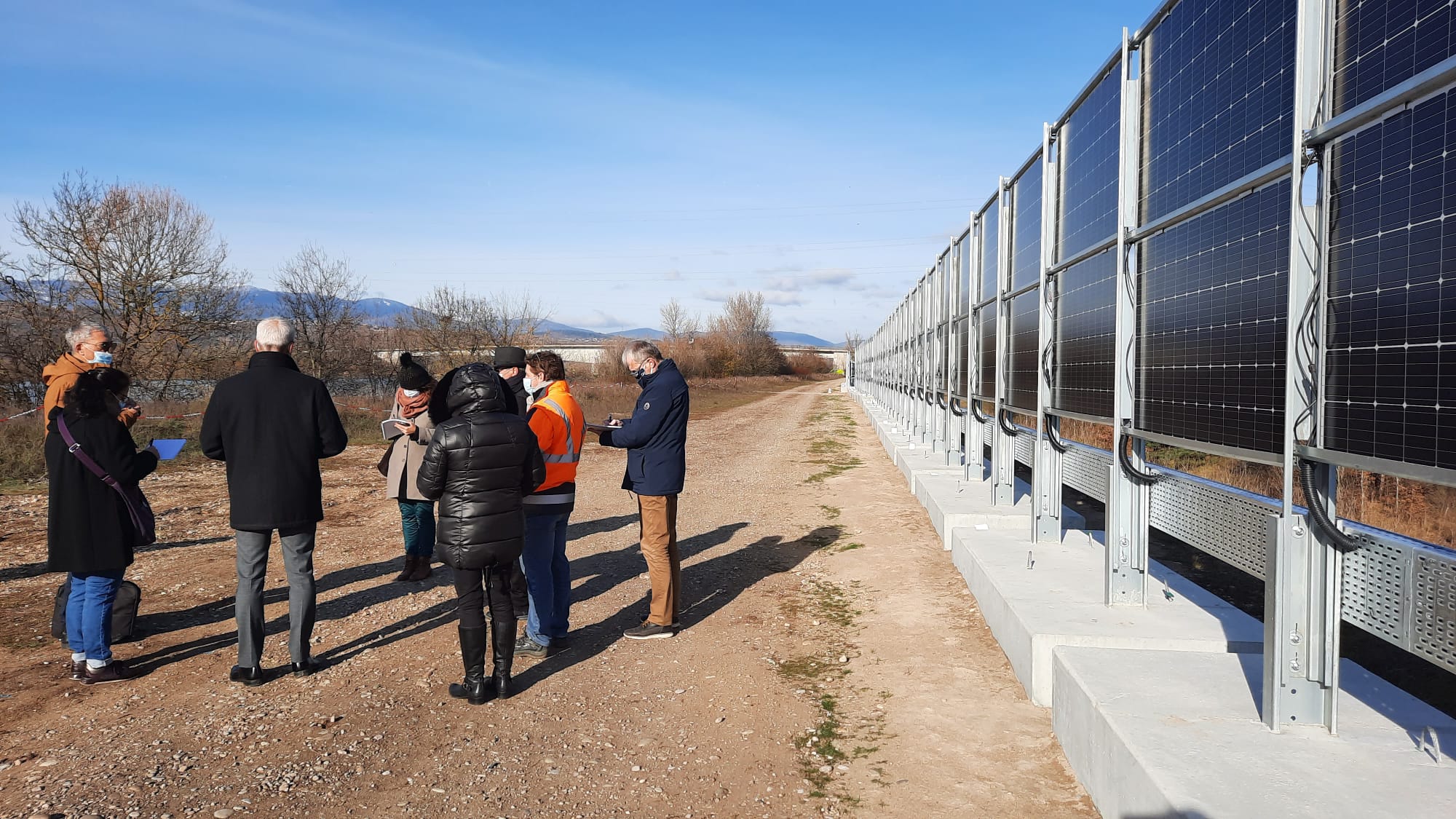 - Technologique : le dispositif permet de tester des panneaux bifaciaux placés verticalement côte à côte pour former une surface linéaire. D’une hauteur de 3 mètres sur 2 rangées, ces panneaux, plus résistants et plus étanches que ceux d’un parc au sol classique, permettent également de produire de l’électricité sur une plage horaire plus large et mieux adaptée aux besoins des territoires et de ceux qui y vivent.