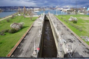 Depuis le 3 mars, CNR coordonne une opération de grande ampleur sur le Rhône pour moderniser et entretenir les 14 écluses à grand gabarit situées entre Lyon et la Méditerranée. Le franchissement de ces ouvrages est interrompu jusqu’au 14 mars afin d’effectuer les opérations de maintenance les plus lourdes, qui mobilisent plus de 300 personnes et 50 entreprises dans la vallée du Rhône. Garantes de la fiabilité de la voie d’eau pour la croisière et le transport de marchandises, les écluses pilotées 7 jours sur 7 par les équipes de CNR enregistrent plus de 70 000 éclusages par an.
