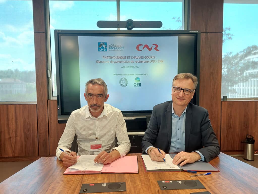 Lundi 9 mai 2022, CNR et la Ligue pour la Protection des Oiseaux (LPO) ont signé une convention de partenariat en Recherche et Développement pour réaliser une étude scientifique sur le comportement des chauves-souris aux alentours et au sein de parcs photovoltaïques de CNR en vallée du Rhône.