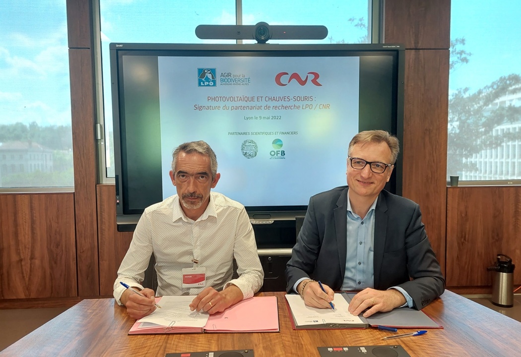 Lundi 9 mai 2022, CNR et la Ligue pour la Protection des Oiseaux (LPO) ont signé une convention de partenariat en Recherche et Développement pour réaliser une étude scientifique sur le comportement des chauves-souris aux alentours et au sein de parcs photovoltaïques de CNR en vallée du Rhône.