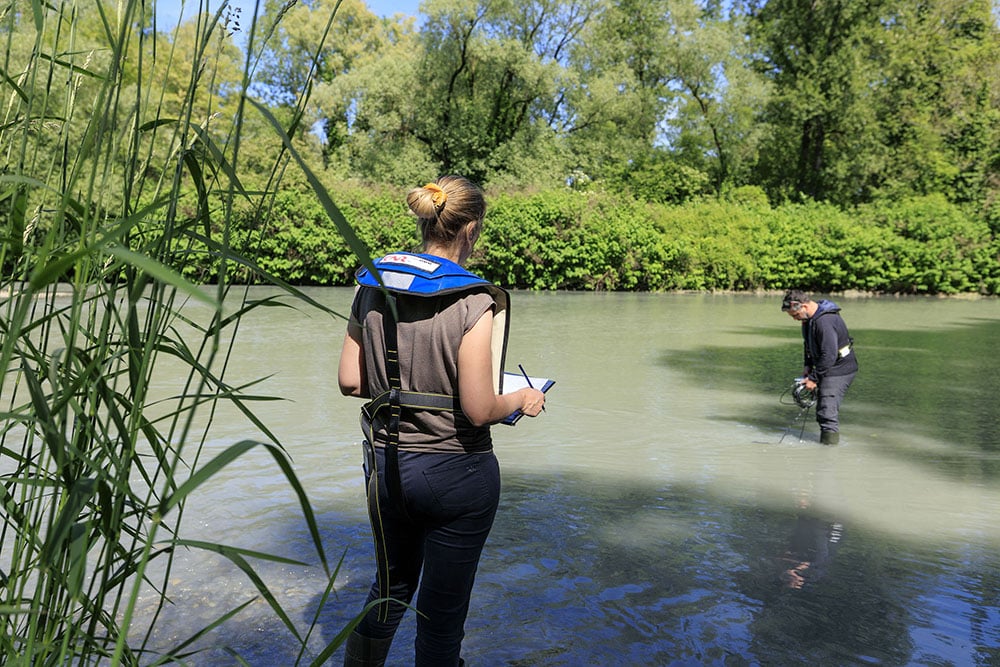 Des pêches de sauvegarde ont été effectuées avant et pendant l’abaissement du Rhône des deux côtés de la frontière. Côté genevois, elles se sont déroulées sur 4 sites naturels et ont permis de recueillir environ 3 800 poissons de 14 espèces. SIG a construit des zones refuges pour les poissons dans les étangs et les lagunes qui ont bien fonctionné lors de cette opération. Un bilan exhaustif sera réalisé ces prochains mois et permettra de déterminer l’impact des opérations sur l’environnement.