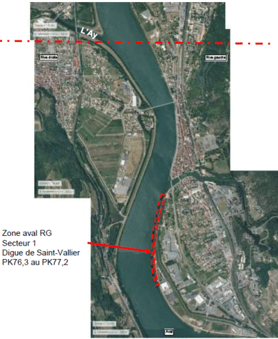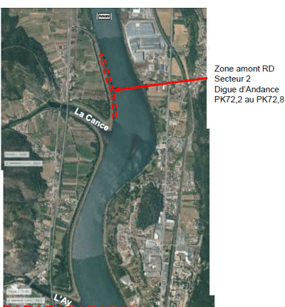 Depuis les années 90, différents diagnostics ont été menés par le Centre d’Analyse Comportementale des Ouvrages Hydrauliques (CACOH) sur les digues du bief de Saint-Vallier. Tous, mettent en évidence un défaut des protections en enrochements sur certains tronçons de digues.