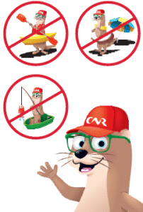 • La navigation, la baignade et toutes autres activités nautiques sont interdites par arrêté inter-préfectoral sur le Rhône entre la frontière suisse et l’aval de l’aménagement hydroélectrique de Sault-Brénaz.