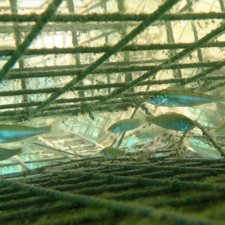 Pour dynamiser la population aquatique, 16 frayères et nurseries à poissons ont été mis en place sous la plateforme flottante.